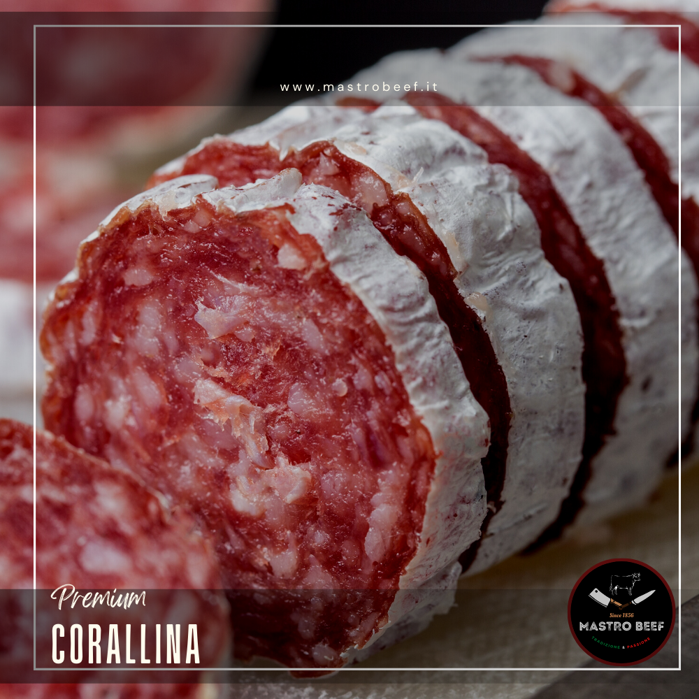 - Ingredienti: La corallina è realizzata principalmente con carni suine magre di alta qualità, come la spalla o il prosciutto. A queste si aggiungono grasso di maiale, sale, pepe, aglio e, a volte, vino bianco.