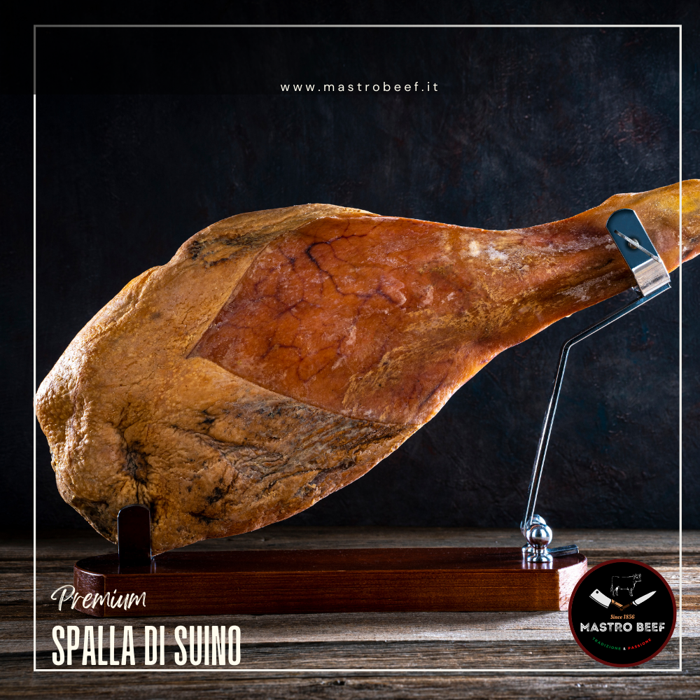 La Spalla di Suino, prelibatezza gastronomica, nasce da una meticolosa preparazione artigianale. Ottenuta dalla parte superiore della coscia, questa pregiata carne subisce una fase di salatura per poi essere delicatamente stagionata per 2 mesi. Durante questo periodo, la Spalla di Suino sviluppa un sapore ricco e una consistenza morbida. La sua eccellenza si esprime nella combinazione di ingredienti di alta qualità e nella maestria artigianale, garantendo un prodotto che incarna la tradizione e la passione per la gastronomia di qualità.